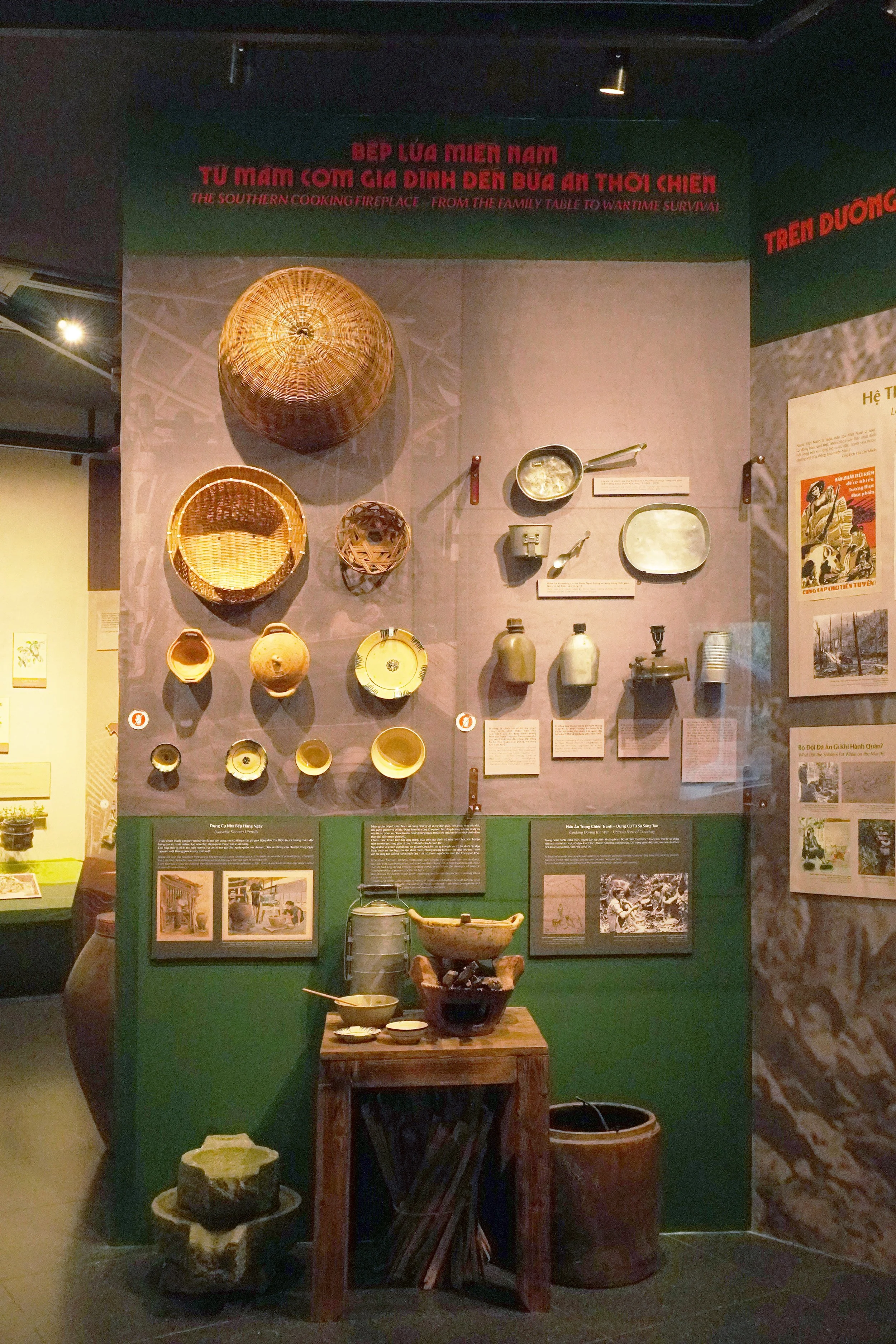 In Southern Vietnam, kitchens traditionally used simple, durable tools such as clay stoves, cast-iron pots, bamboo baskets, and stone mortars. Handcrafted from local materials, these utensils served everyday cooking needs long before the shortages of wartime transformed the heart of the home.